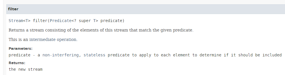 - allMatch returns true if all elements of the Stream satisfy the filter;