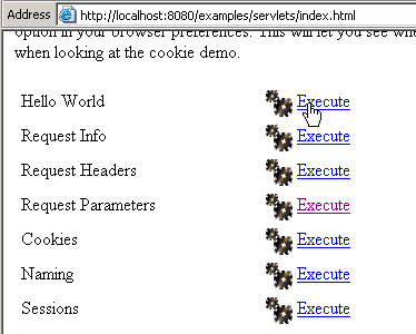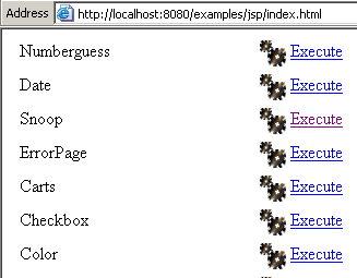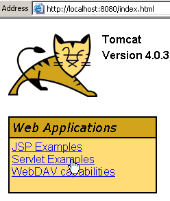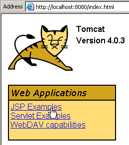 This chapter contains various examples of servlets and JSP pages. They have been tested with the Tomcat server, which runs on port 8080. By following the links on the home page, you can access examples of servlets and JSP pages. Most of the examples below are taken from Tomcat’s examples. To test them, simply start Tomcat, enter the URL http://localhost:8080 in a browser, and follow the servlet link.