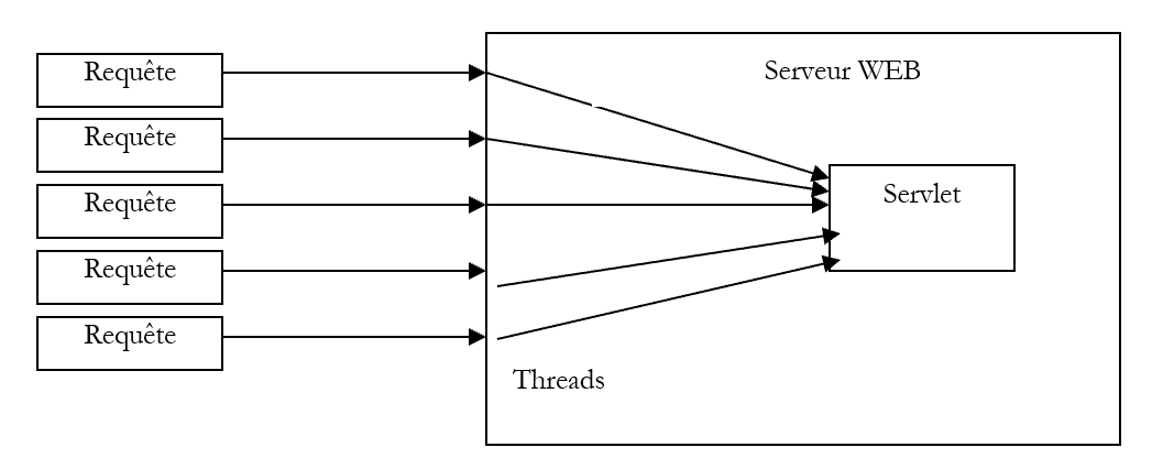 The documentation indicates that the web server may sometimes create multiple instances of the same servlet. In this case, the previous synchronization no longer works because the lock variable is local to a single instance and is therefore not known to the other instances. The same applies to the counter variable. To make them global to all instances, we write: