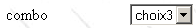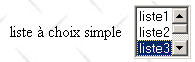 name="cmbValeurs": control name. size="1": number of visible list items. size="1" makes the list equivalent to a combo box. selected: if this keyword is present for a list item, that item appears selected in the list. In our example above, the list item choice2 appears as the selected item in the combo box when it is first displayed. |