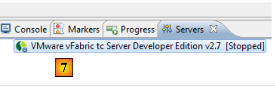 - in [7], the servers window. A server is registered. It is a Tomcat-compatible VMware server.