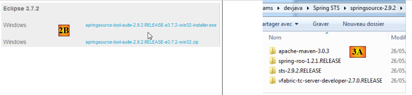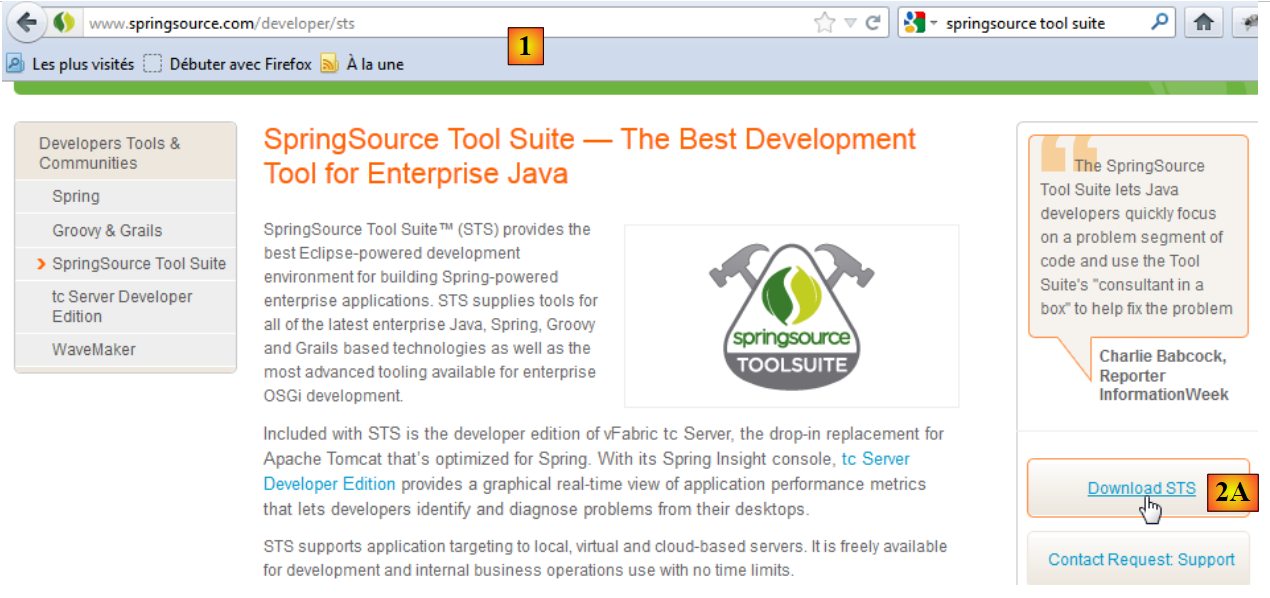 - Go to the SpringSource Tool Suite (STS) website [1] to download the current version of STS [2A] [2B].