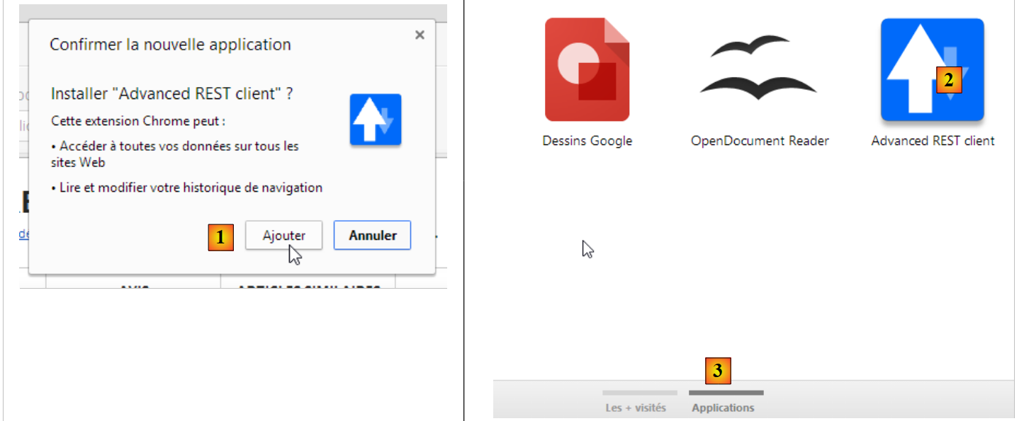 In this document, we use Google's Chrome browser (http://www.google.fr/intl/fr/chrome/browser/). We will add the [ Advanced Rest Client] extension to it. Here's how to do it:
