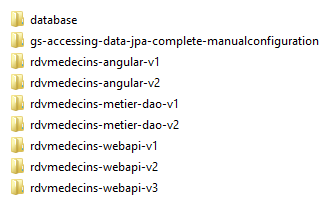 - The server is contained in the [rdvmedecins-metier-dao-v2] and [rdvmedecins-webapi-v3] folders;