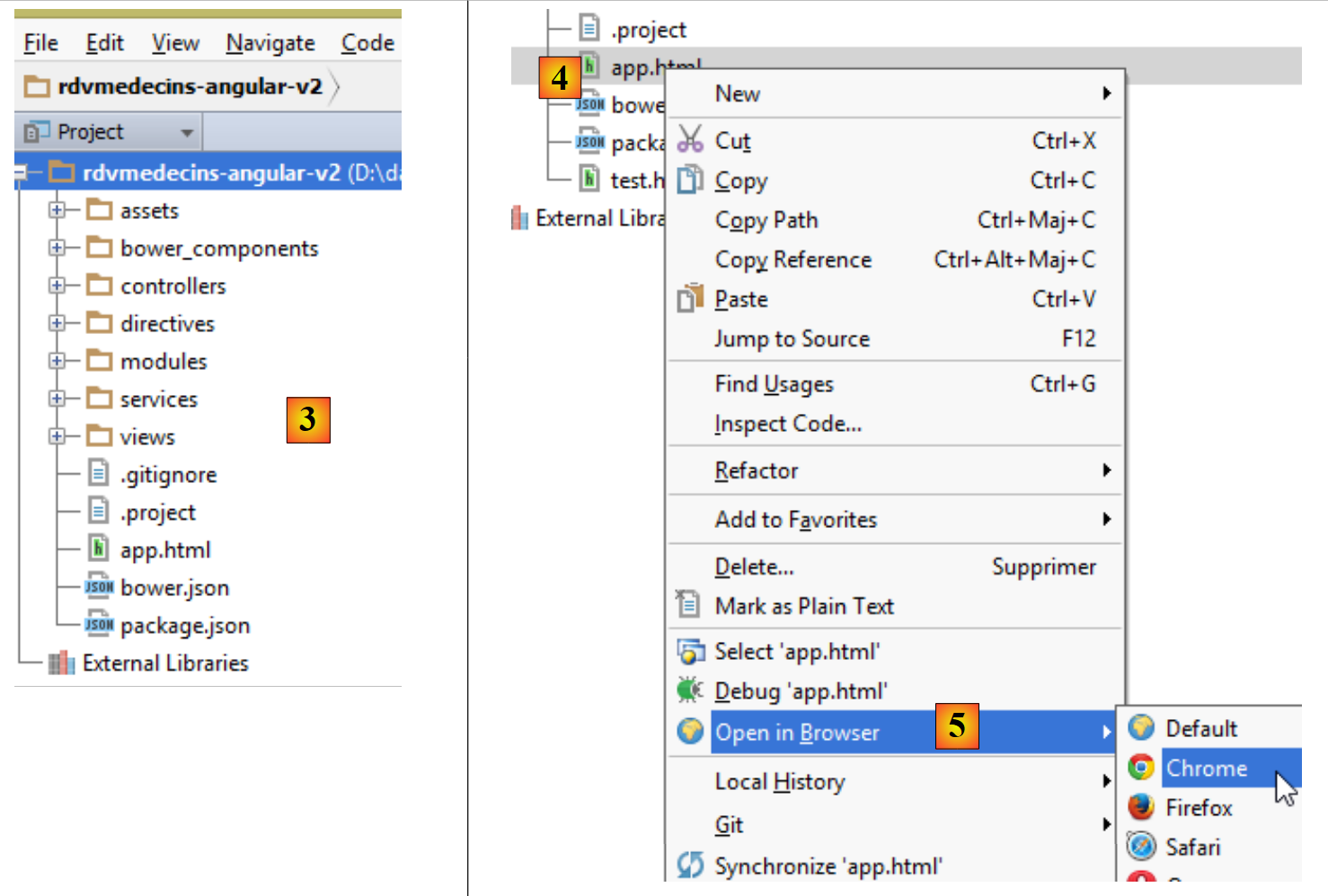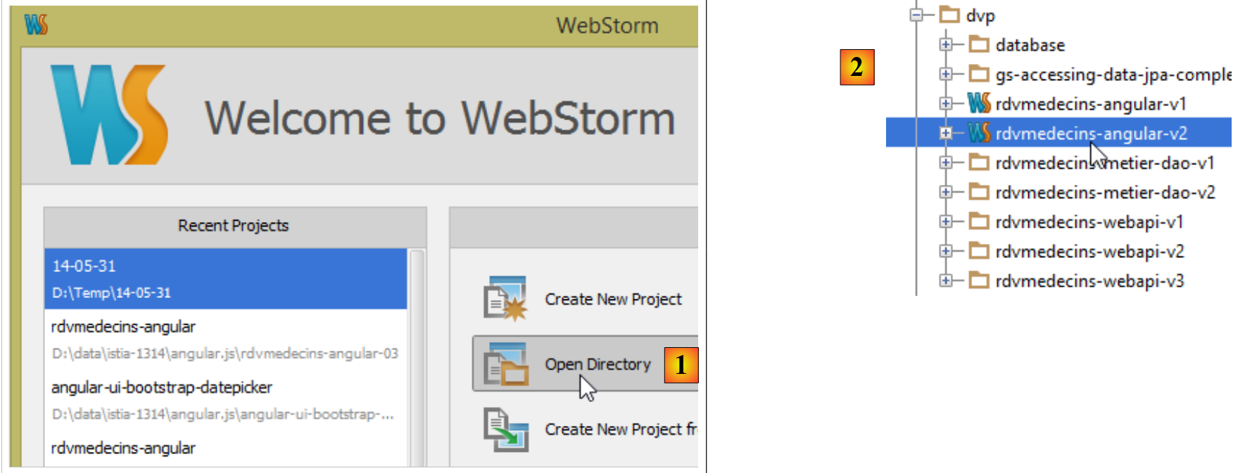 We open the [rdvmedecins-angular-v2] folder with WebStorm: