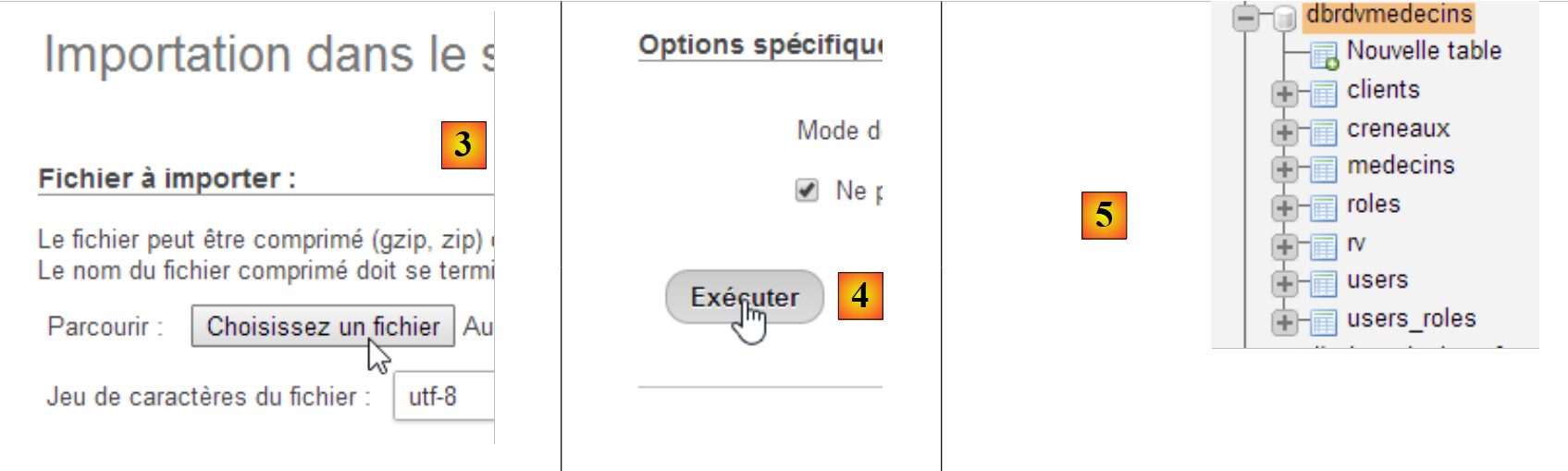 - in [3], select the file [database/dbrdvmedecins.sql];