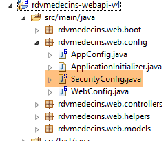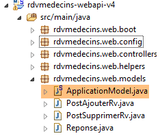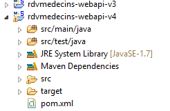 We saw in Section 2.11.9 how to create a WAR archive for Tomcat. We repeat the process here. First, to preserve the existing structure, we duplicate the Eclipse project [rdvmedecins-webapi-v3] into [rdvmedecins-webapi-v4].