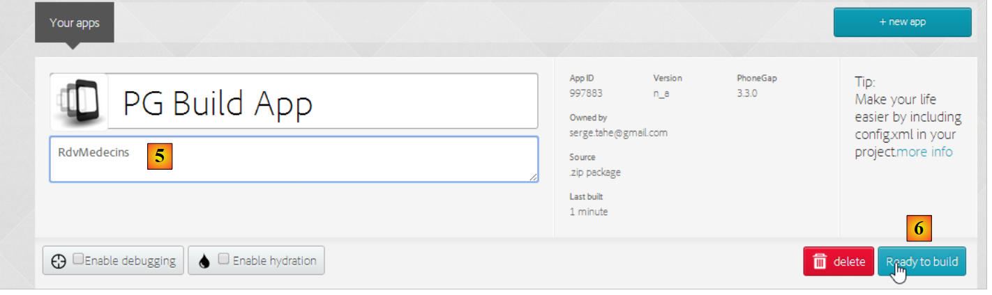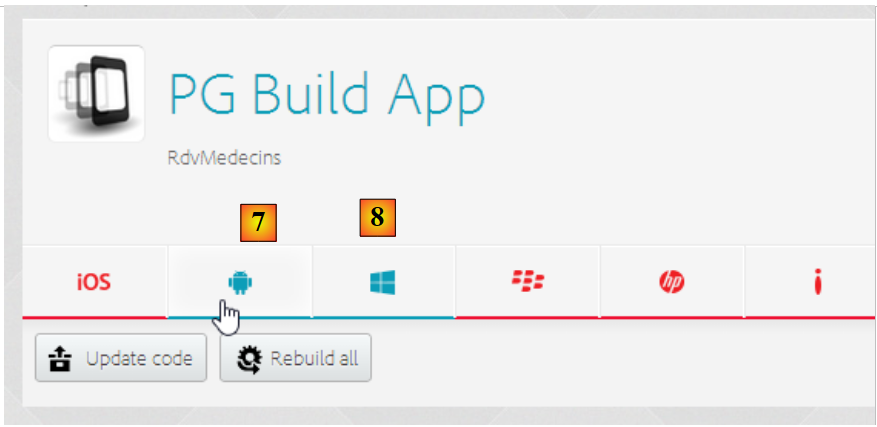 - in [6], build it. This may take 1 minute. Wait until the icons for the various mobile platforms indicate that the build is complete;