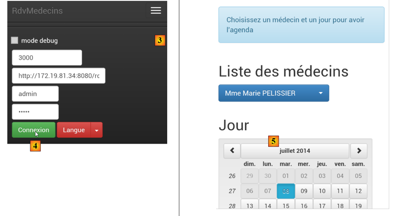 - the HTML client is at the URL [http://localhost:8080/rdvmedecins-webapi-v4/app];