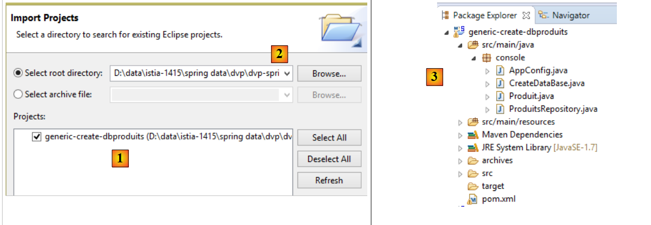 - in [4], import the [generic-create-dbproduitscategories] project, which can be found in [<examples>/spring-database-generic/spring-jpa] [5];