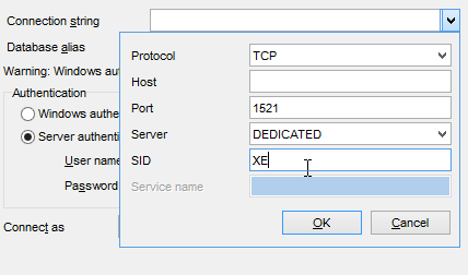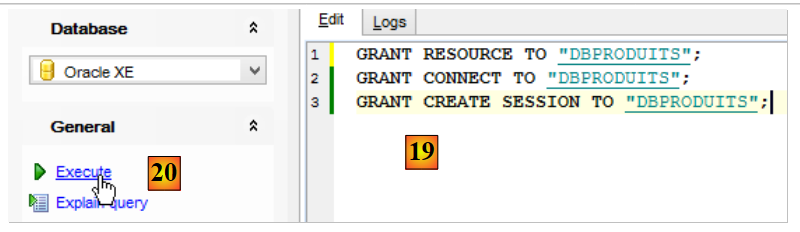 Now that we have a user [DBPRODUITS / dbproduits], we will connect to Oracle using these credentials: