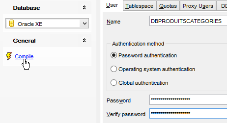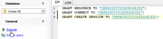 We do the same thing to create the user [DBPRODUITSCATEGORIES / dbproduitscategories]: