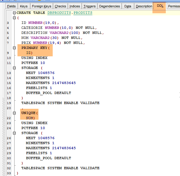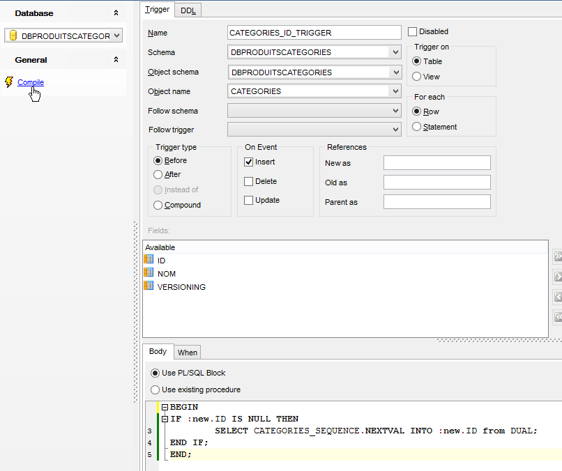 - in [7], a stored procedure specific to the Oracle DBMS. It specifies that the [ID] field of the row to be inserted must be initialized with the next value from the generator named [PRODUITS_SEQUENCE];