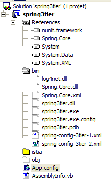 - In the NUnit examples we’ve used so far, we used an [XmlObjectFactory] object to obtain the singletons we needed. Here, the object used is of type [IApplicationContext], a Spring interface. It is obtained from [App.config] using the [ConfigurationSettings] class, a class traditionally used in .NET to process configuration files.
