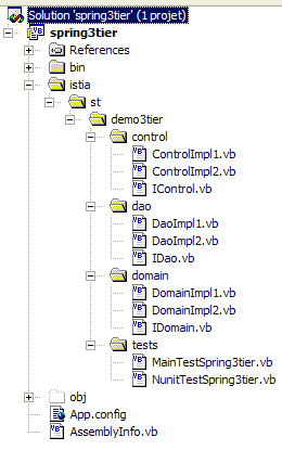 The previous program is named [MainTestSpring3tier.vb] and is located in the [tests] package: