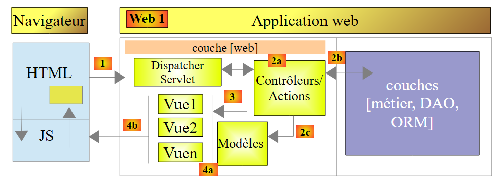 The [Web] layer can be implemented without a framework and without following the MVC model. We then have a multi-layer architecture, but the Web layer does not implement the MVC model.