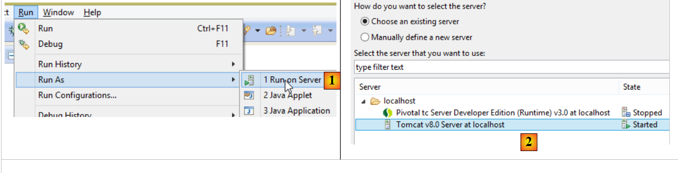 - In [1-2], run the project on one of the servers registered in the Eclipse IDE;