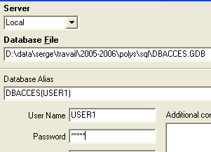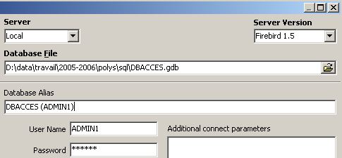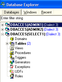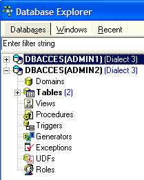 and register it with the alias DBACCES (ADMIN1). Using aliases allows you to open connections to the same database with different usernames, making them easier to identify in the IBExpert database explorer. :