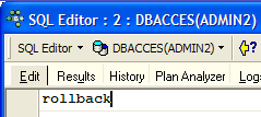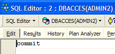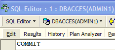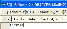 Let's go back to the SQL editor (ADMIN1) to execute the COMMIT: