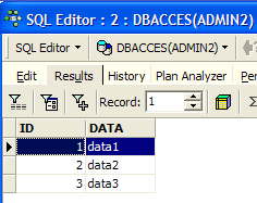 Select DBACCES(ADMIN2) and open an SQL editor (Shift + F12):