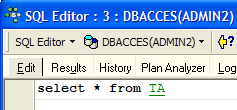 Let’s grant user [ADMIN2] SELECT permission on table TA. Only the table owner can grant this permission, i.e., [ADMIN1] in this case. Switch to the DBACCES(ADMIN1) connection and open a new SQL editor (Shift+F12):