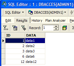 With the DBACCES(USER1) connection, open a new SQL editor (Shift + F12) and enter the following commands: