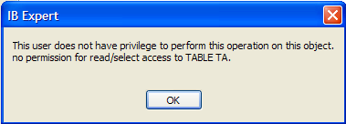When we worked with IB-Expert, we logged in as the SYSDBA user. This information can be found in the properties of the open connection to the DBMS: