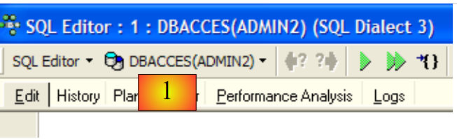 We will have the opportunity to use various connections to the same database [DBACCES]. For each of them, we will have an SQL editor. In [1], the SQL editor displays the alias of the connected database. Use this information to determine which SQL editor you are in. This is important because we will create connections that do not have the same access rights to the database objects.