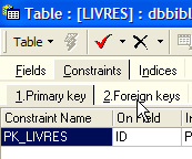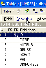 - line 29: the constraint name has been changed. It was previously called [UNQ1_BIBLIO]. It is now called [UNQ1_LIVRES]. This name can be anything. However, it is preferable that it be meaningful. Here, this effort was not made. Constraints on different fields and different tables within a database must be distinguished by different names. Recall that the constraint on line 29 requires that a title be unique within the table.