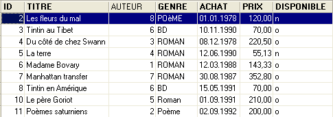 One might wonder if we’ve actually gained anything in the end. Indeed, the [BOOKS] table lists author numbers instead of their names. Since there are thousands of authors, linking a book to its author seems difficult. Fortunately, SQL is here to help us. It allows us to query multiple tables at the same time. For this example, we present the SQL query that lets us retrieve the titles of the books in the library, along with their authors’ information. Let’s use the SQL editor (F12) to execute the following SQL statement: