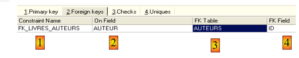 We define the foreign key [AUTHOR] of table [BOOKS] on the field [ID] of table [AUTHORS] as follows: