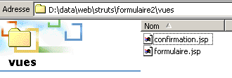 The DynaFormulaire class is the class that will contain the values from view #1, formulaire.jsp. The InitFormulaireAction class is the class that will process the form values submitted via the [Submit] button on formulaire.jsp.