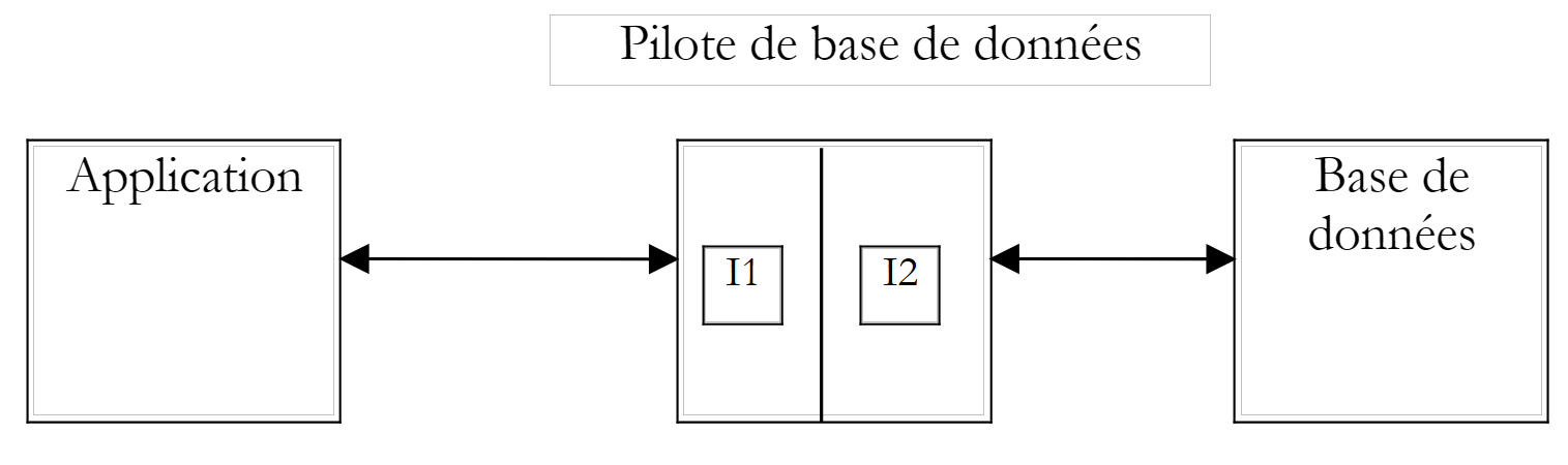 To prevent an application written for database B1 from having to be rewritten if migrating to a different database B2, standardization efforts have been made on interface I1. If databases using "standardized" drivers are employed, database B1 will be provided with driver P1, database B2 with driver P2, and the I1 interface of these two drivers will be identical. Thus, the application will not need to be rewritten. For example, you can migrate an ACCESS database to a MySQL database without changing the application.