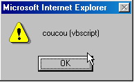 We won’t delve any further into HTML. Let’s modify the file coucou2.htm by adding a VBScript and rename it coucou1.htm: