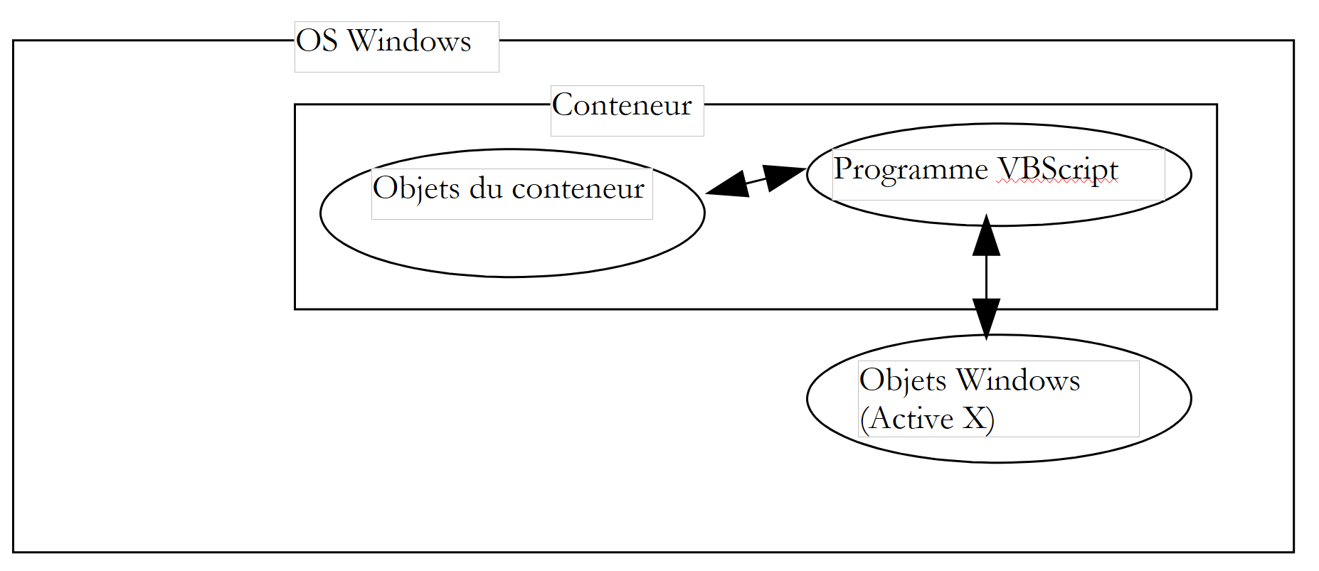 A VBScript program does not run directly in Windows but within a container that provides it with an execution context and a number of objects specific to it. Additionally, the VBScript program can use objects made available by the Windows system, known as ActiveX objects.