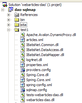 The NUnit test class for the implementation class [ArticlesDaoSqlMap] is the same as that for the class [ArticlesDaoPlainODBC] (see section 2.3.3.2). We follow a similar approach to prepare the NUnit test for the class [ArticlesDaoSqlMap]: