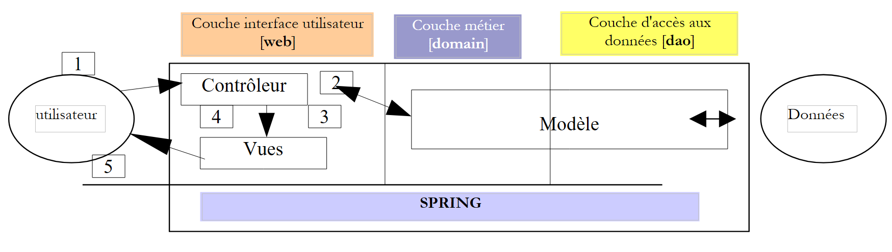We will begin by reviewing what was done in Part 1, particularly the three-tier architecture [web, domain, dao] used. In the proposed solution, the [dao] layer was a test layer: the data source was implemented using an [ArrayList] object. In this article, we will focus on the [DAO] layer, presenting various possible implementations of it when the data is in a DBMS.