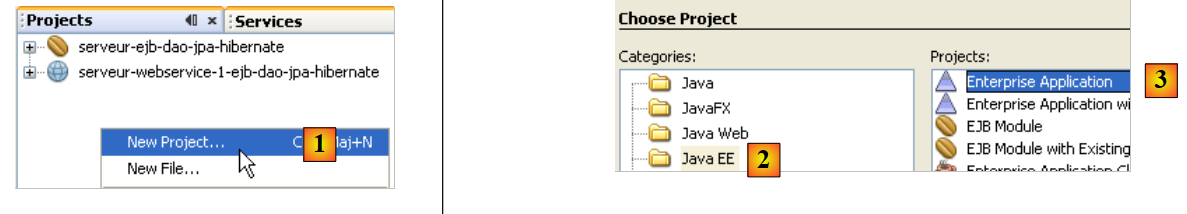 - In [2], select the [Java EE] category, and in [3], select the [EJB Module] type