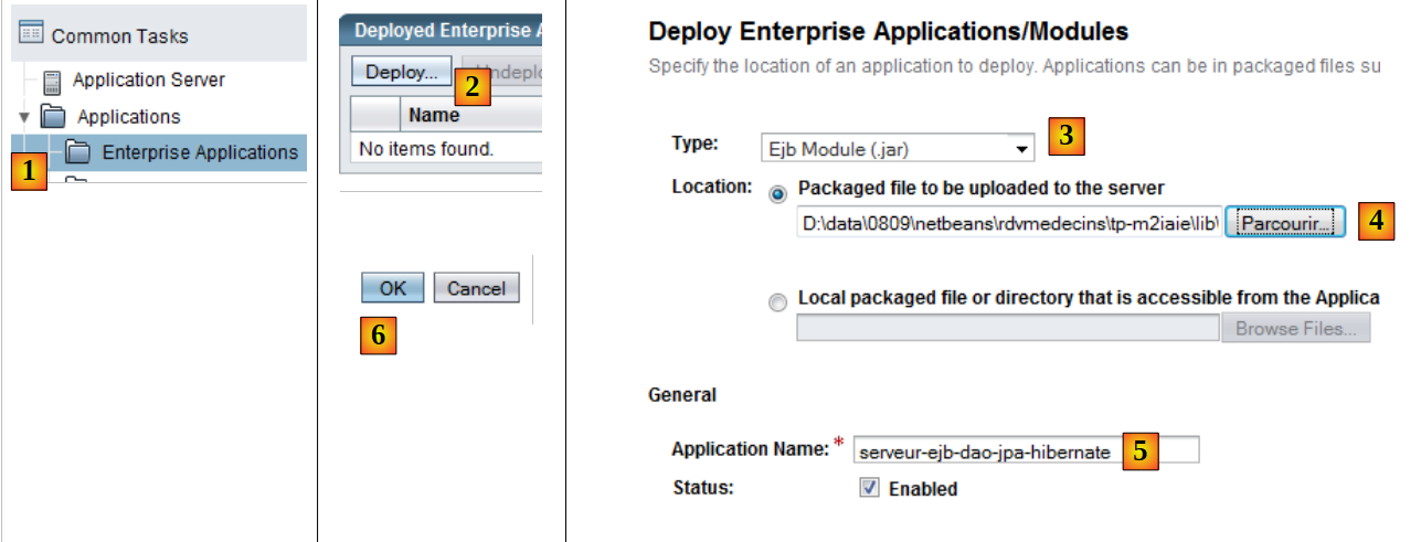 - In [4], specify the .ear file for the NetBeans project [ea-rdvmedecins]