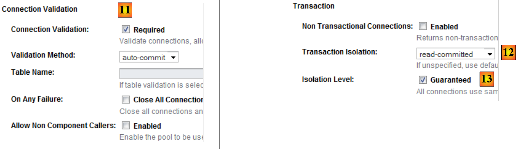 - In [11], define the characteristics of the JDBC resource’s connection pool