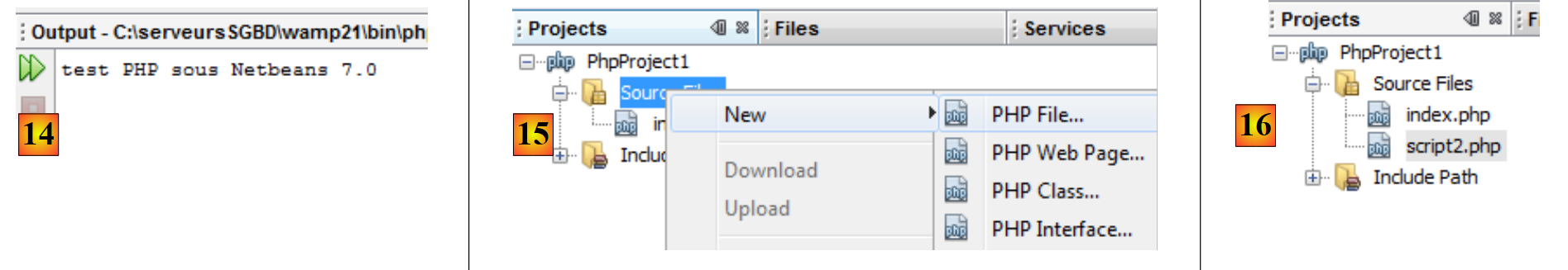 Puede descargar la versión completa [1] o la versión sólo para PHP [2], que es más ligera. Una vez instalado y ejecutado NetBeans, puedes crear tu primer proyecto PHP.