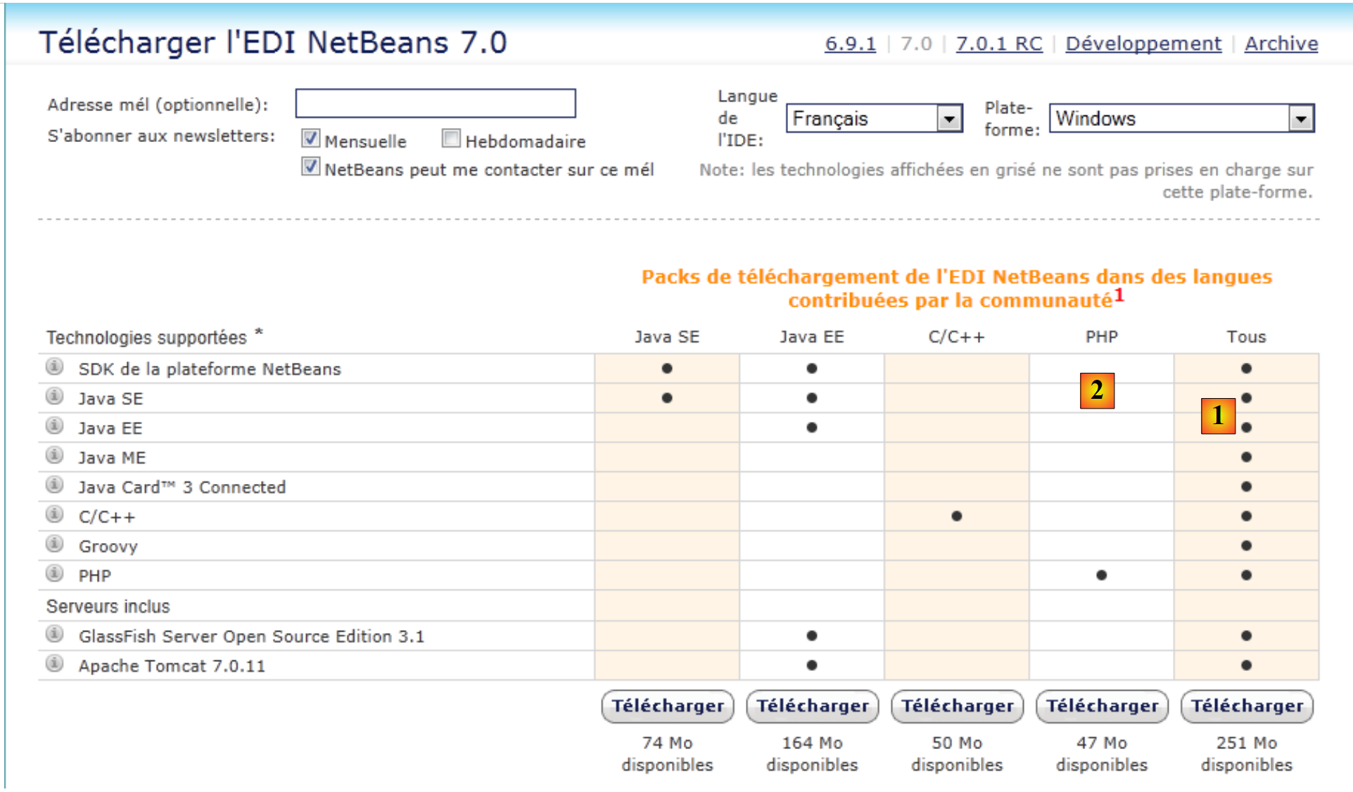 El NetBeans 7.0 IDE puede descargarse de la siguiente dirección (julio de 2011):
