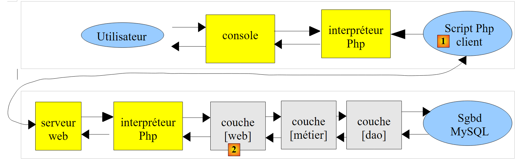 El script del servidor [2] consiste en la capa [web] del servidor.