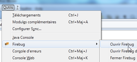 Con el Firefox navegador, puede ver los datos reales intercambiados entre el cliente y el servidor web. Existe un Firefox plugin llamado Firebug que permite realizar un seguimiento de este intercambio de datos. Firebug está disponible en URL [https://addons.mozilla.org/fr/firefox/addon/firebug/]. Si utiliza el Firefox navegador para visitar este URL, puede descargar el Firebug plugin. En lo sucesivo supondremos que se ha descargado e instalado el plugin Firebug. Es accesible a través de una opción en el menú de Firefox:
