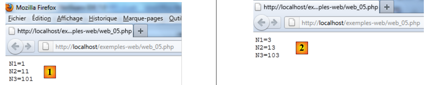 - En [4], ejecutamos el script web [example1.php]. a continuación, NetBeans iniciará el navegador predeterminado de la máquina y le indicará que muestre el URL [http://localhost/exemples-web/exemple1.php] [5]