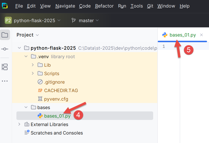 - En [4-5], se ha creado el script [bases_01] y está listo para ser editado;