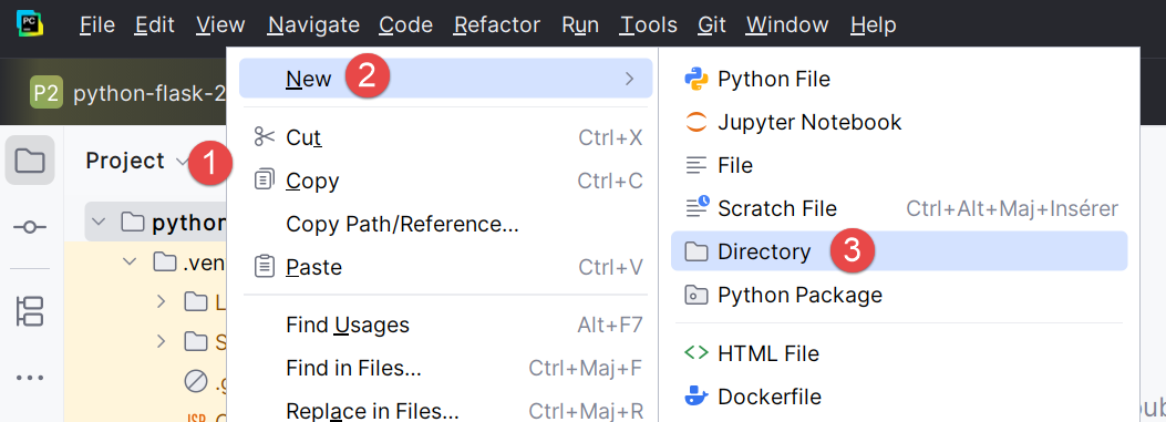 - Haga clic con el botón derecho del ratón sobre el proyecto y, a continuación, seleccione [1-3] para crear una carpeta;