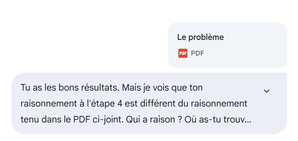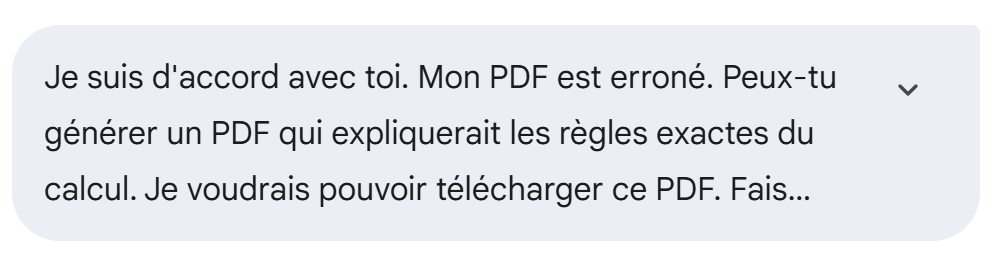 Así pues, los resultados de Gemini coinciden con el resultado del simulador oficial de impuestos. Pero ha utilizado una regla que no figura en el PDF. ¿Dónde está el error? Se lo preguntamos adjuntándole el PDF: