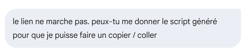 Al igual que antes, Gemini ha proporcionado un enlace de descarga del script generado, enlace que no funciona. Se le indica: