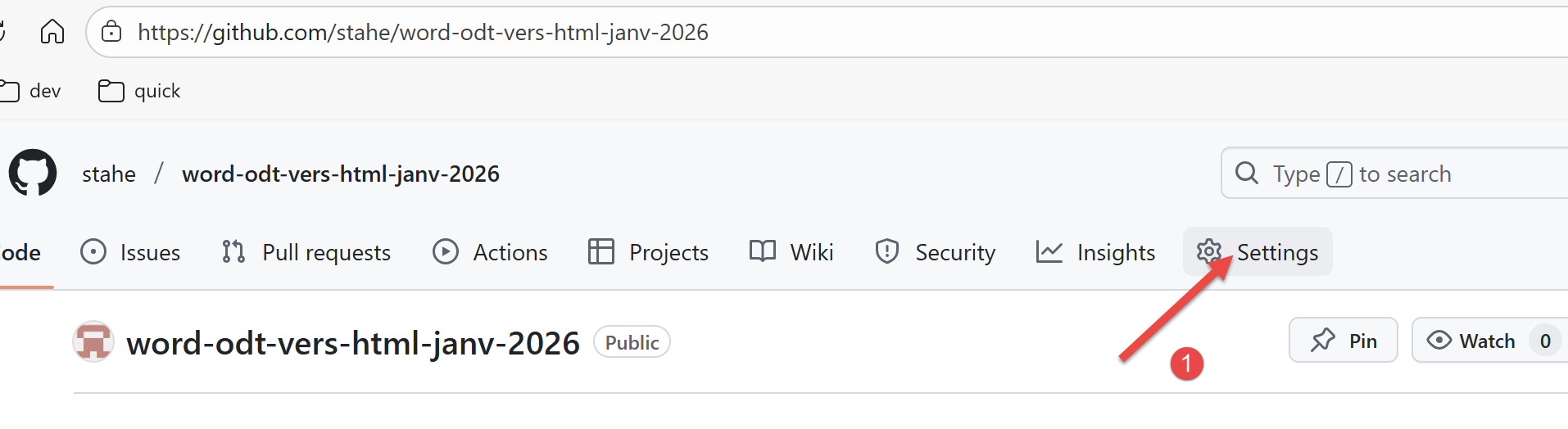 - En [1], ve a la configuración del repositorio;